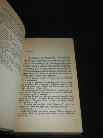 Assinatura de posse. Encadernação em capa dura. Ambientado nos dias da fundação de Hong Kong, este trabalho apresenta a história de Dirk Struan, o governante - o Tai-Pan - da empresa comercial no Extremo Oriente, que também é um pirata, um contrabandista de ópio e um mestre manipulador de homens. Ele apresenta a história de sua luta para estabelecer a si mesmo e sua dinastia como os mestres indiscutíveis do Oriente.