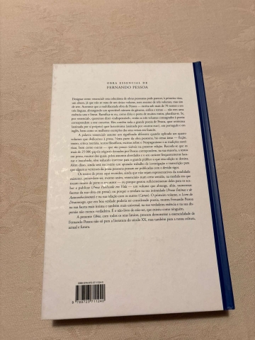 Designar como «essencial» esta colectânea de obras Pessoanas pode parecer, à primeira vista, um abuso, já que não se trata de um único volume, nem mesmo de três volumes, mas sim de sete. Acontece que a multifacetada obra de Pessoa — escrita sob mais de 70 nomes e em três línguas, abrangendo um apreciável número de géneros, estilos e temas — não tem uma essência una e linear. Ramifica-se ou, como diria o poeta de muitos rostos, pluraliza-se. Se, por «essencial», queremos dizer «indispensável», então os três volumes consagrados à poesia correspondem a esse conceito. Eles contêm toda a grande poesia de Pessoa, quer ortónima (assinada por si próprio) quer heterónima (assinada por «outros eus»), em português e em inglês, bem como os melhores exemplos dos seus versos em francês.