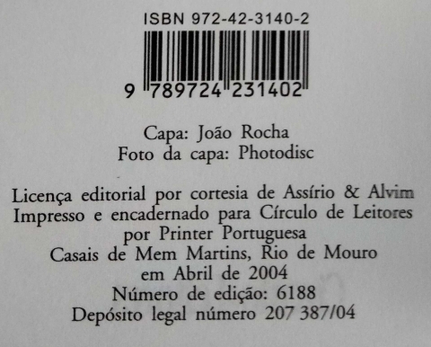 Dim. - +/- (15,5 x 24,5) cm; estado = usado; capa dura; 195 pgs.; 1ª edição nº 6188; 2004; 12 / 25; ISBN - 9724231402
