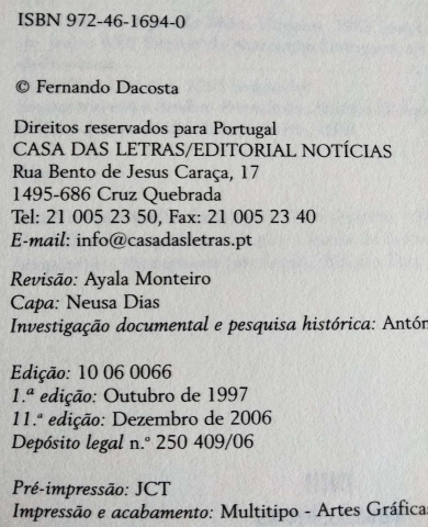 Dim. - +/- (15 x 23) cm; estado = usado; capa mole; 374 pgs.; 11ªedição; 2006; ISBN - 9724616940