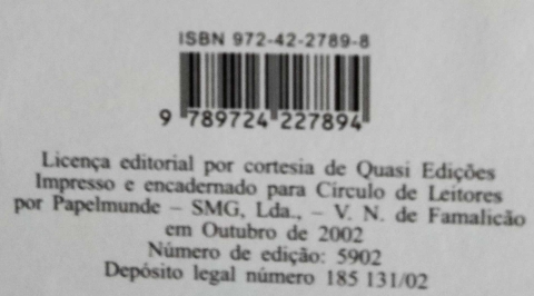 Dim. - +/- (15,5 x 24,5) cm; estado = usado; capa dura; 317 pgs.; 1ª edição nº 5902; 2002; 12 / 25; ISBN - 9724227898