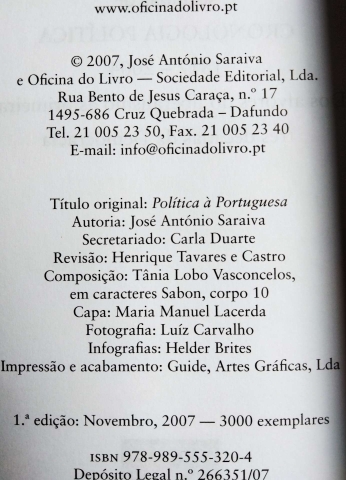 Dim. - +/- (15 x 23) cm; estado = usado; capa mole; 445 pgs.; 1ªedição; 2007; ISBN - 9789895553204