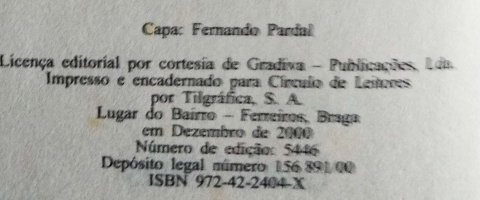 Dim. - +/- (15 x 24) cm; estado = usado; capa dura; 175 pgs.; 1ª edição nº 5446; 2000; 12 / 25; ISBN - 972422404X; pequenas pintas castanhas claras, próprio de certa qualidade de papel