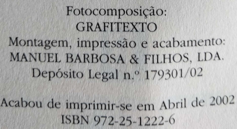 Dim. - +/- (15 x 23) cm; estado = usado; capa mole; 199 pgs.; 1ªedição; 2002; ISBN - 9722512226