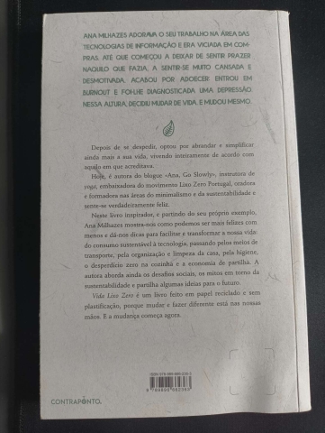 Neste livro inspirador, e partindo do seu próprio exemplo, Ana Milhazes mostra-nos como podemos ser mais felizes com menos e dá-nos dicas para facilitar e transformar a nossa vida: do consumo sustentável à tecnologia, passando pelos meios de transporte, pela organização e limpeza da casa, pela higiene, o desperdício zero na cozinha e a economia de partilha. A autora aborda ainda os desafios sociais, os mitos em torno da sustentabilidade e partilha algumas ideias para o futuro.