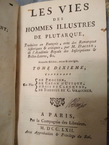 Plutarco les vies des hommes illustres de Plutarque 1762