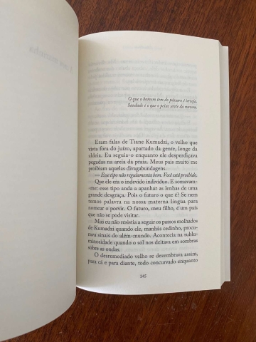 Um pequeno flash deste novo livro de Mia Couto para deliciar os leitores: «Era uma vez uma menina que pediu ao pai que fosse apanhar a lua para ela. O pai meteu-se num barco e remou para longe. Quando chegou à dobra do horizonte pôs-se em bicos de sonhos para alcançar as alturas. Segurou o astro com as duas mãos, com mil cuidados. O planeta era leve como uma baloa. «Quando ele puxou para arrancar aquele fruto do céu se escutou um rebentamundo. A lua se cintilhaçou em mil estrelinhações. O mar se encrispou, o barco se afundou, engolido num abismo. A praia se cobriu de prata, flocos de luar cobriram o areal. A menina se pôs a andar ao contrário em todas as direcções, para lá e para além, recolhendo os pedaços lunares»