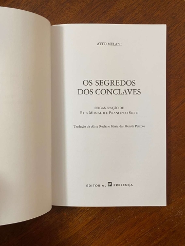 Os Segredos dos Conclaves, uma missiva dirigida ao rei Luís XIV, é um texto particularmente inspirado e cheio de uma ironia fina. Melani, na sua qualidade de prelado e agente secreto do Rei Sol oferece-lhe todas as indicações necessárias para dominar a difícil arte de fazer prevalecer a sua influência nas eleições pontificiais da época e descreve, em particular, as vicissitudes do conclave que elegeu Inocêncio XII. Além do seu irrecusável interesse como documento histórico, é também um texto admirável que por si só justifica a leitura, mas esta ganha relevo e sentido no contexto do enredo dos referidos romances. Em todo o caso, é absolutamente um livro a não perder.
