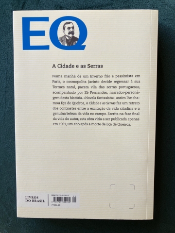 "Numa manhã de um Inverno frio e pessimista em Paris, o cosmopolita Jacinto decide regressar à sua Tormes natal, pacata vila das serras portuguesas, acompanhado por Zé Fernandes, narrador-personagem desta história. «Novela fantasista», assim lhe chamou Eça de Queiroz, A Cidade e as Serras faz um retrato dos contrastes entre a excitação da vida citadina e a genuína beleza da vida no campo.