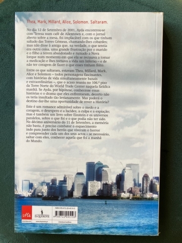 Este é um romance admirável sobre o medo e a coragem, o desespero e a lucidez, a culpa e a expiação; mas é também um livro sobre Einstein e os universos paralelos, sobre o que foi e o que podia não ter sido. No décimo aniversário do 11 de Setembro, a memória não basta, é preciso combater o esquecimento indo para junto dos heróis que viveram o horror e compreender cada um dos seus actos - se necessário, saltar com eles, conhecer aquela que foi a manhã do Mundo."