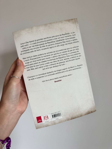Mas nenhum deles poderia ter previsto as circunstâncias que os voltariam a reunir. Precisamente no momento em que há um tratado de paz em vista, surge um vírus mortal para causar o pânico nas Colónias, e a ameaça de guerra paira sobre as cidades fronteiriças da República. Esta nova epidemia é mais letal do que nunca, e está nas mãos de June, apenas, a defesa do seu país. Mas, para salvar a vida a milhares de pessoas, terá de pedir àquele que ama que abdique de tudo…