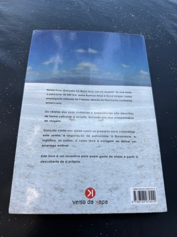 Neste livro, Gonçalo Gil Mata leva-nos no assento da sua mota a percorrer 40 000 km, entre Buenos Aires e Nova Iorque, numa empolgante odisseia de 7 meses, através do fascinante continente americano. Os relatos das suas vivências e experiências são descritos de forma cativante e viciante, tornando-nos seus companheiros de viagem. Gonçalo conta-nos ainda como se preparou para concretizar este sonho: a angariação de patrocínios, a burocracia, a logística, os custos, e como teve a coragem de deixar um emprego estável. Este livro é um incentivo para quem gosta de viajar e partir à descoberta de si próprio.