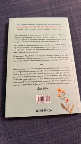 O regresso de Alice Kellen é um pequeno pedaço da história de um país, de uma geração e de duas personagens que se amaram nos bons e nos maus momentos, enquanto desenhavam, juntos, as constelações da sua vida. «Este continua a ser o meu romance mais pessoal e, também, aquele que mais alegrias me tem proporcionado, porque nunca esperei nada desta história que, afinal, tornaram vossa. e isso tem uma explicação: escrevi-a para mim. Fi-lo enquanto atravessava um dos momentos mais difíceis da minha vida; agora, tudo isso ficou para trás e tornou-me mais forte, empática e sensível. Porém, naquela altura, presa entre dezembro e janeiro de um inverno que parecia não acabar, as letras tornaram-se um refúgio seguro.»