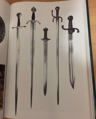 Livro escrito em holandês, com o título traduzido: "Um guia histórico para armaduras e armas"