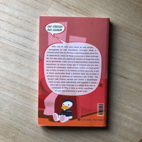 "Se és um adolescente, então não podes perder esta colecção. Iniciada com o livro Que Cena, Mãe!, onde a protagonista nos dá conta do seu dia-a-dia familiar, agora a história é outra e fala de amor. Amor adolescente, daquele que só se vive uma vez na vida, desajeitado, que provoca nervoso miudinho e dores de barriga. Mas apesar destes efeitos colaterais, Malu, ou Maria de Lourdes como a mãe prefere chamar-lhe, não desistirá de viver esta etapa com uma alegria contagiante. Não é todos os dias que conhece os mais variados tipos de rapazes, desde os mais tímidos aos mais atrevidos, os fofos, os doidos, os da Internet, os namorados-cola, os que se dizem apaixonados desde o primeiro beijo (ou só desde a primeira troca de palavras), os ciumentos, e por aí fora...Uma colecção muito divertida, actual e adequada ao quotidiano adolescente que não deixará ninguém indiferente. Nem mesmo a ti!"