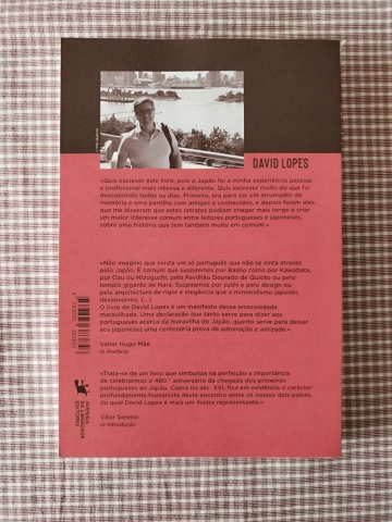 Quando o desafio de ir viver e trabalhar no Japão surgiu, o meu sogro João Ricardo (1945 -2013), disse-me no último jantar: «Não te esqueças de tomar nota e de escrever tudo aquilo que agora vais conhecer em profundidade, pois só assim ganhamos mundo.» É sobretudo por essa razão que está neste momento a ler este livro. Um livro que fala de um destino, em forma de pequenos retratos. Pequenos pedaços da cultura e do quotidiano japoneses, que me capturaram para sempre.