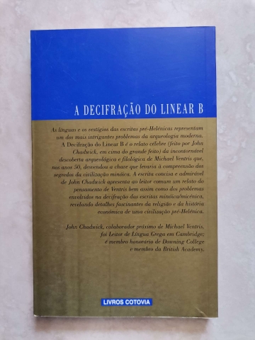 “As línguas e os vestígios das escritas pré-Helénicas representam um dos mais intrigantes problemas da arqueologia moderna. A decifração do Linear B é o relato da incontornável descoberta arqueológica e filológica que, nos anos 50, desvendou a chave que levaria à compreensão dos segredos da civilização minóica.”