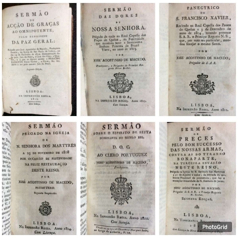 - SERMÃO PRÉGADO NA IGREJA DE N. SENHORA DOS MARTYRES. A 23 de Novembro de 1808 Por Occasião de Festividade NA FELIZ RESTAURAÇÃO DESTE REINO. Por José Agostinho de Macedo, Presbytero. Segunda Impressão. LISBOA: Na Impressão Regia. Anno 1814. Com Licença.
