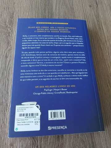 Só que, quando tudo parece perfeito, é porque alguma coisa deve estar para acontecer. J. D. Grimthorpe, famoso autor de romances de mistério, aparece morto no salão de chá do hotel. A polícia começa a investigação, aquela morte é completamente inesperada, é óbvio que se trata de um crime, mas… quem será o assassino? Lily, a nova camareira? Serena, a assistente do escritor? Estará o porteiro Preston a esconder alguma coisa? E Molly é mesmo inocente?