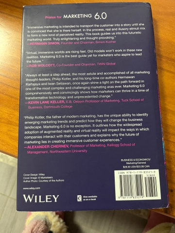 Em Marketing 6.0: O Futuro é Imersivo, o célebre promotor dos «Quatro Pês do Marketing», Philip Kotler, mostra como se pode utilizar a tecnologia da blockchain e do metaverso para responder às necessidades dos clientes e causar um impacto no sector em que se atua e no mundo em geral. Este livro prepara os profissionais de marketing para a nova era do metamarketing, fornecendo ferramentas para integrar a evolução da tecnologia e do modelo de negócio com as mudanças nos comportamentos do consumidor registadas na última década.