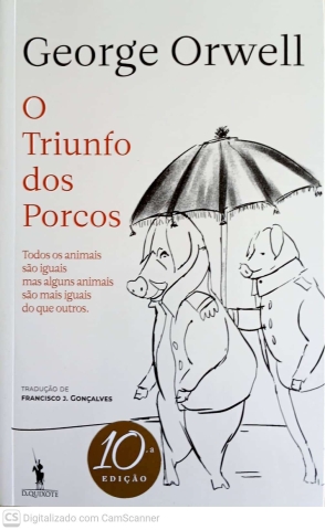 " O Triunfo dos Porcos" (Animal Farm), de George Orwell, é uma fábula política e sátira distópica onde animais de uma quinta se revoltam contra o dono humano para criar uma sociedade justa. Contudo, os porcos assumem o poder e corrompem os ideais, tornando-se ditadores tão cruéis quanto os humanos, resultando na famosa máxima: "Todos os animais são iguais, mas alguns são mais iguais do que outros".