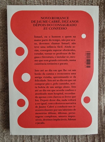 Ismael, ou o homem a quem na maior parte do tempo, não por acaso, devemos chamar Ismael, não teve uma infância fácil. Ainda assim, conseguiu superar obstáculos, estudar, tornar se professor de línguas e literatura, e instalar se, mesmo que sem grande estrondo, numa existência rotineira e pacata. Isto até ao dia em que lhe cai um botão da camisa e reencontra uma antiga vizinha, aproximando se da felicidade. Isto até ao dia em que vai comprar pão e, pelo caminho, aceita boleia de um antigo aluno. Isto até ao dia em que acorda confuso e atordoado num hospital, recordando apenas com clareza os livros que leu. Depois desse dia, nada voltará a ser igual, com a destreza narrativa de Jaume Cabré a conduzir nos irresistivelmente por um labirinto de memórias difusas, dilemas, personagens complexas, amores impossíveis, destinos implacáveis, falenas e javalis.