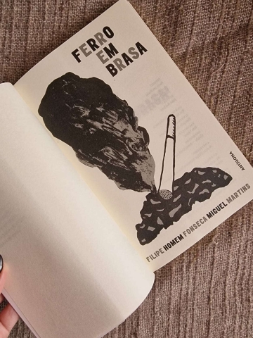 Ferro em Brasa é um linguadão dos antigos, pré-pandemia, nas beiças de Alfred Jarry. É tudo o que Homero e Camões teriam escrito se tivessem menos génio e uma Famel. Poder-se-á dizer que narra a quase-odisseia de um fumador de barras de dinamite, a relação incestuosa que manteve com a onda de Hokusai e o seu papel químico no trágico destino de mil Sósias-Simétricos? Sim, mas não.