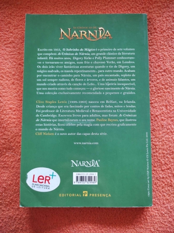 Este clássico de literatura infantil escrito em 1955 por C. S. Lewis e ilustrado por Pauline Baynes é o primeiro de sete volumes que compõem «As Crónicas de Nárnia» e que dão início a uma nova colecção da Presença com o mesmo nome. Neste livro, Digory e Polly conhecem-se e tornam-se amigos num frio e chuvoso Verão em Londres. Os dois irão viver fantásticas aventuras quando o maléfico tio de Digory, Andrew, que pensa ser um mágico, os manda repentinamente para outro mundo. Acabam por encontrar o caminho para Nárnia, um mundo encantado repleto de um sol radiante, de flores e árvores que crescem miraculosamente e de animais falantes, criado através da canção de Leão… Uma história inesquecível, que nos mostra como começou o glorioso nascimento de Nárnia. Uma obra que vai apaixonar miúdos e graúdos, amplamente conhecida do público em geral.