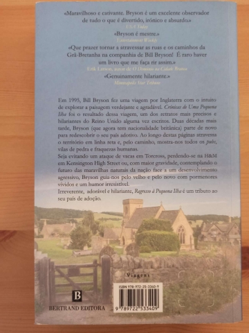 Seja evitando um ataque de vacas em Torcross, perdendo-se na H&M em Kensington High Street ou, com maior gravidade, contemplando o futuro das maravilhas naturais da nação face a um desenvolvimento agressivo, Bryson guia-nos pelo velho e pelo novo com pormenores vívidos e um humor irresistível. Irreverente, adorável e hilariante, Regresso à Pequena Ilha é um tributo ao seu país de adoção.