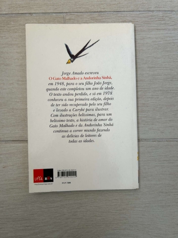 Jorge Amado escreveu O Gato Malhado e a Andorinha Sinhá em 1948, para o seu filho João Jorge, quando este completou um ano de idade. O texto andou perdido, e só em 1978 conheceu a sua primeira edição, depoi de ter sido recuperado pelo filho e levado a Carybé para ilustrar. Com ilustrações belíssimas, para um belíssimo texto, a história de amor do Gato Malhado e da Andorinha Sinhá continua a correr mundo fazendo as delícias de leitores de todas as idades.
