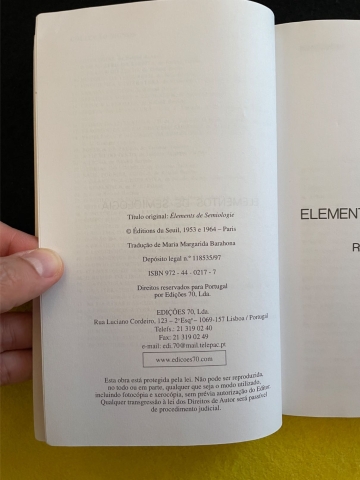 «O único objectivo dos Elementos aqui apresentados é destacar a linguística dos conceitos analíticos que a priori julgamos suficientemente gerais para permitirem iniciar a investigação semiológica. Reunindo-os, não conjecturamos se continuarão intactos no decurso da investigação; nem se a semiologia deve seguir sempre à letra o modelo linguístico».