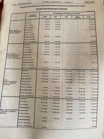 Programa de Investimento e Despesas de Desenvolvimento da Administração Central - Resumo por programas e medidas.
