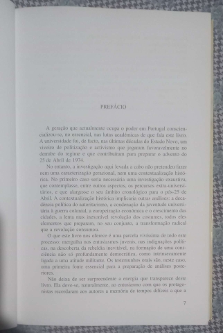 De 1956 a 1974, os estudantes portugueses enfrentaram uma ditadura, ideologicamente Implacável, politicamente repressiva. Fizeram-me em nome do direito a aprender, contra a escola de então, mas também contra a guerra, as prisões por delito de opiniao, o colonialismo. Jovens rapazes e raparigas cerraram punhos pela ideia de socialismo, com referências nos Estados soviético e Chinês, ou sem elas. Fundaram organizações, partidos clandestinos, cineclubes, grupos de teatro, jornais, revistas. Romperam com os cânones artísticos, importaram modas e teorias ao som de Joan Baez, ou Zeca Afonso, debateram e confrontaram-se, fazendo frente ao poder que ajudar a derrubar. Foi um grande parte pela revisitação das suas Memórias que este livro se fez.
