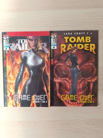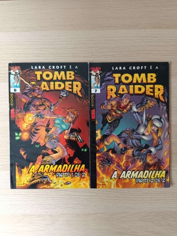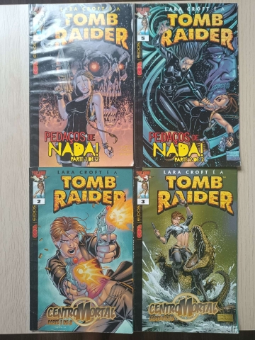 Vários volumes da coleção Tomb Raider, uma parceria entre a Record e a Devir.