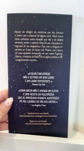 Apesar do milagre da medicina que fez diminuir o tumor que a atacara há alguns anos, Hazel nunca tinha conhecido outra situação que não a de doente terminal, sendo o capítulo final da sua vida parte integrante do seu diagnóstico. Mas com a chegada repentina ao Grupo de Apoio dos Miúdos com Cancro de uma atraente reviravolta de seu nome Augustus Waters, a história de Hazel vê-se agora prestes a ser completamente rescrita. PERSPICAZ, ARROJADO, IRREVERENTE E CRU, A Culpa é das Estrelas é a obra mais ambiciosa e comovente que o premiado autor John Green nos apresentou até hoje, explorando de maneira brilhante a aventura divertida, empolgante e trágica que é estar-se vivo e apaixonado.