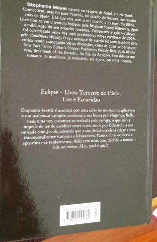 Ao mesmo tempo que Seattle é assolada por uma série de mortes inexplicáveis e um malicioso vampiro continua a sua busca por vingança, mais uma vez Bella encontra-se rodeada por perigo em Eclipse, o terceiro volume da saga de Luz e Escuridão. No centro de tudo, ela é forçada a escolher entre o seu amor por Edward e a sua amizade com Jacob, sabendo que a sua decisão poderá atiçar a luta intemporal entre vampiro e lobisomem. Com o final do liceu a aproximar-se rapidamente, Bella tem mais uma decisão a tomar: vida ou morte. Mas, qual é qual?
