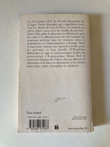 Sinopse (FR): Le 10 octobre 1947, les 20 000 cheminots de la ligne Dakar-Bamako, qui s'appellent entre eux les "Bouts de bois de Dieu ", se mettent en grève. Après cinq mois de conflit, ils parviennent à faire plier la direction et obtiennent gain de cause. Cet affrontement très dur marque un tournant profond dans les relations entre la population et l'administration coloniale. Mais il représente surtout une épreuve terrible pour les grévistes et leur famille.