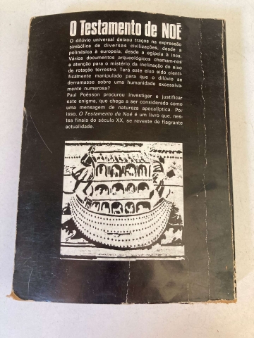 Sinopse: O dilúvio universal deixou traços na expressão simbólica de diversas civilizações, desde a polinésica à europeia, desde a egípcia à inca. Vários documentos arqueológicos chamam-nos a atenção para o mistério da inclinação do eixo de rotação terrestre. Terá este eixo sido cientificamente manipulado para que o dilúvio se derramasse sobre uma humanidade excessiva mente numerosa? Paul Poesson procurou investigar e justificar este enigma, que chega a ser considerado como uma mensagem de natureza apocalíptica. Por isso, O Testamento de Noé é um livro que, nestes finais do século XX, se reveste de flagrante atualidade.