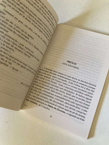 Sinopse: Nesta obra perpassam figuras da época como André de Resende, Bernardim Ribeiro, Paula Vicente e o pai, o qual preparou o texto dramático que foi representado para festejar o casamento da princesa D. Beatriz, filha de D. Manuel I.