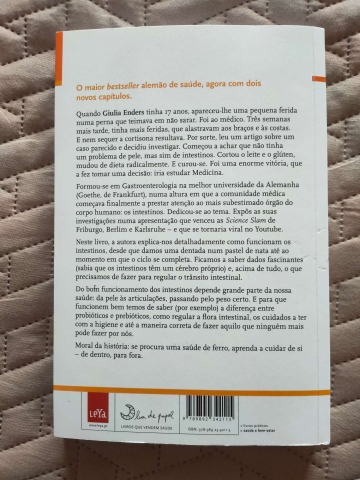 Neste livro, a autora explica-nos detalhadamente como funcionam os intestinos, desde que damos uma dentada num pastel de nata até ao momento em que o ciclo se completa. Ficamos a saber dados fascinantes (os intestinos têm um cérebro próprio) e o que precisamos de fazer para regular o trânsito intestinal. Do bom funcionamento dos intestinos depende grande parte da nossa saúde: das articulações à pele, até ao peso certo. E para que funcionem bem temos de saber (por exemplo) a diferença entre probióticos e prebióticos, como regular a flora intestinal, os cuidados a ter com a higiene e até a maneira correta de fazer aquilo que ninguém mais pode fazer por nós.