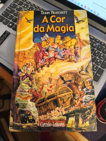 "A Cor da Magia", publicado em 1983, é o primeiro livro da aclamada série Discworld de Terry Pratchett. Trata-se de uma sátira de fantasia que parodia os clichés do género, introduzindo um mundo plano, sustentado por quatro elefantes que, por sua vez, estão nas costas de uma tartaruga gigante, a Grande A'Tuin, navegando pelo espaço.