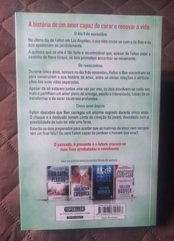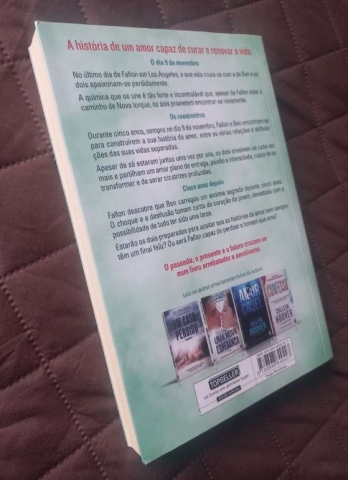 A história de um amor capaz de curar e renovar a vida. O dia 9 de novembro No último dia de Fallon em Los Angeles, a sua vida cruza-se com a de Ben e os dois apaixonam-se perdidamente. A química que os une é tão forte e incontrolável que, apesar de Fallon estar a caminho de Nova Iorque, os dois prometem encontrar-se novamente. Os reencontros Durante cinco anos, sempre no dia 9 de novembro, Fallon e Ben encontram-se para construírem a sua história de amor, entre as várias relações e atribulações das suas vidas separadas. Apesar de só estarem juntos uma vez por ano, os dois envolvem-se cada vez mais e partilham um amor pleno de entrega, paixão e intensidade, capaz de os transformar e de sarar cicatrizes profundas. Cinco anos depois Fallon descobre que Ben carregou um enorme segredo durante cinco anos. O choque e a desilusão tomam conta do coração da jovem, devastada com a possibilidade de tudo ter sido uma farsa. Estarão os dois preparados para aceitar que as histórias de amor nem sempre têm um final feliz? Ou será Fallon capaz de perdoar o homem que ama? O passado, o presente e o futuro cruzam-se num livro arrebatador e envolvente.