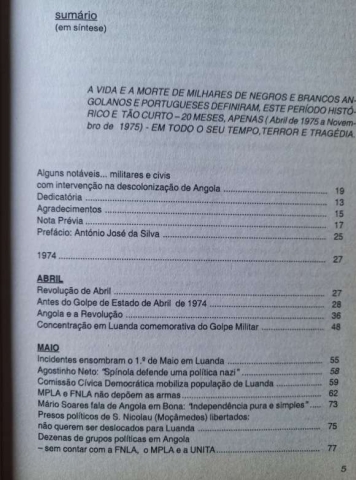 O autor, jornalista angolano, deu à estampa uma obra com muitos pormenores da história da tragédia que foi a descolonização e a guerra civil que se seguiu entre movimentos de libertação, FNLA, MPLA e UNITA.