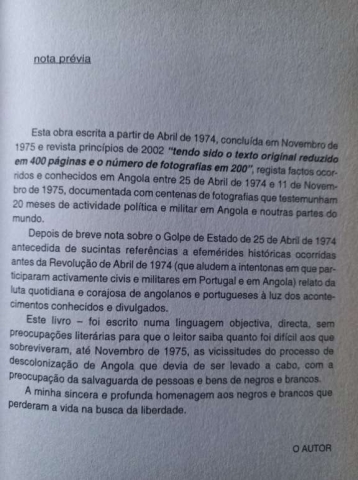 Do tipo cronológico, o autor relata com recurso à comunicação social local, todos os acontecimentos, peripécias, conquistas e tragédias do processo político de transferência de poderes entre a potência colonial e o povo angola.