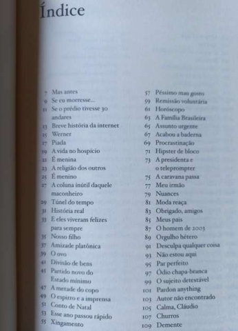 Neste livro, Duvivier transita magistralmente entre ficções, memórias de infância, exercícios de estilo, artistas que o influenciaram, a situação política esquizofrénica que se vive no Brasil e no mundo, sempre com um sentido de humor acutilante e provocador. O livro reúne crónicas publicadas no jornal Folha de S. Paulo entre 2013 e 2015