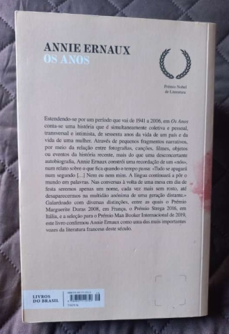 Estendendo-se por um período que vai de 1941 a 2006, em Os Anos conta-se uma história que é simultaneamente coletiva e pessoal, transversal e intimista, de sessenta anos da vida de um país e da vida de uma mulher. Através de pequenos fragmentos narrativos, por meio da relação entre fotografias, canções, filmes, objetos ou eventos da história recente, mais do que uma desconcertante autobiografia, Annie Ernaux constrói uma recordação de um «nós», num relato sobre o que fica quando o tempo passa: «Tudo se apagará num segundo [...] Nem eu nem mim. A língua continuará a pôr o mundo em palavras. Nas conversas à volta de uma mesa em dia de festa seremos apenas um nome, cada vez mais sem rosto, até desaparecermos na multidão anónima de uma geração distante.» Galardoado com diversas distinções, entre as quais o Prémio Marguerite Duras 2008, em França, o Prémio Strega 2016, em Itália, e a seleção para o Prémio Man Booker Internacional de 2019, este livro confirmou Annie Ernaux como uma das mais importantes vozes da literatura francesa deste século.