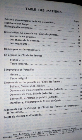 Título: La Critique de L'Ecole des Femmes