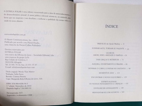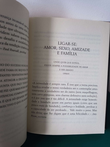 The Oprah Magazine celebra o seu décimo aniversário com este lindo livro-objecto, que contém mais de seiscentas citações inspiradoras seleccionadas a partir das suas páginas e publicadas na última década. Atribuídas a figuras históricas e líderes espirituais, escritores e actores, filósofos e laureados com o Prémio Nobel, encontraremos pensamentos sobre amor e sexo, amizade e gratidão, sucesso e dinheiro e muito mais. Obviamente, inclui o melhor de Oprah, os seus momentos mais memoráveis, os conselhos sobre envelhecer bem, as suas formas favoritas de agradecer e a sua visão sobre a persecução dos nossos sonhos mais loucos.