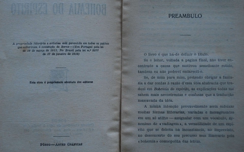A minha intenção provavelmente seria enfeixar muitas formas literárias, variadas e incongruentes em um só atilho - assinalar com um vocábulo, sinónimo de «vadiagem a versatilidade de um espirito que se deleita na inconstancia, no imprevisto, no desconcerto do seu percurso sem itinerário pela «Bohemia cosmopelita das letras.