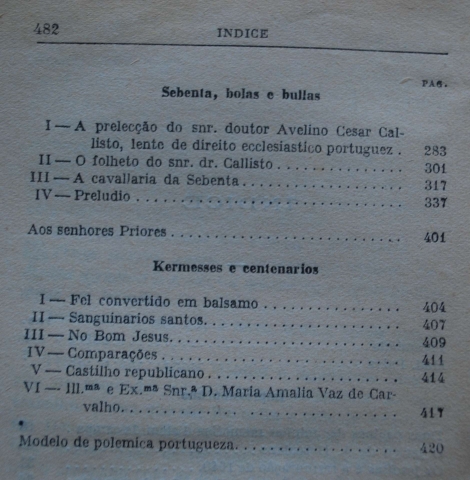 Interessante colectânea de escritos, anteriormente vindos a lume em diversas publicações periódicas. Esta colectânea abrange muitos dos géneros literários cultivados por Camilo: jornalismo, história, dramaturgia, polémica, alguns prefácios e poesia.